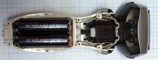 Эта бритва вела себя аналогично моей, и когда заряда стало хватать на 2-3 сеанса бритья пришло время «оживить» её по отработанному способу. Моему удивлению не было предела, когда я разобрал это устройство.