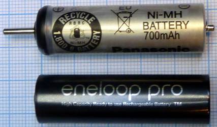 Здесь я обнаружил много полезных изменений. «Чупа Чупс» подрос до длинны стандартного аккумулятора АА. Значит, фирма Panasonic отказалась от своих, специфических (коротких) аккумуляторов и стала использовать стандартные аккумуляторы, устанавливая на них специфические контакты. Это 11-й сюрприз!